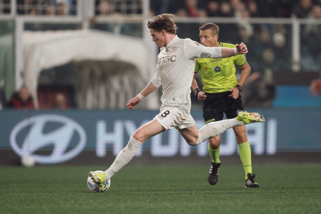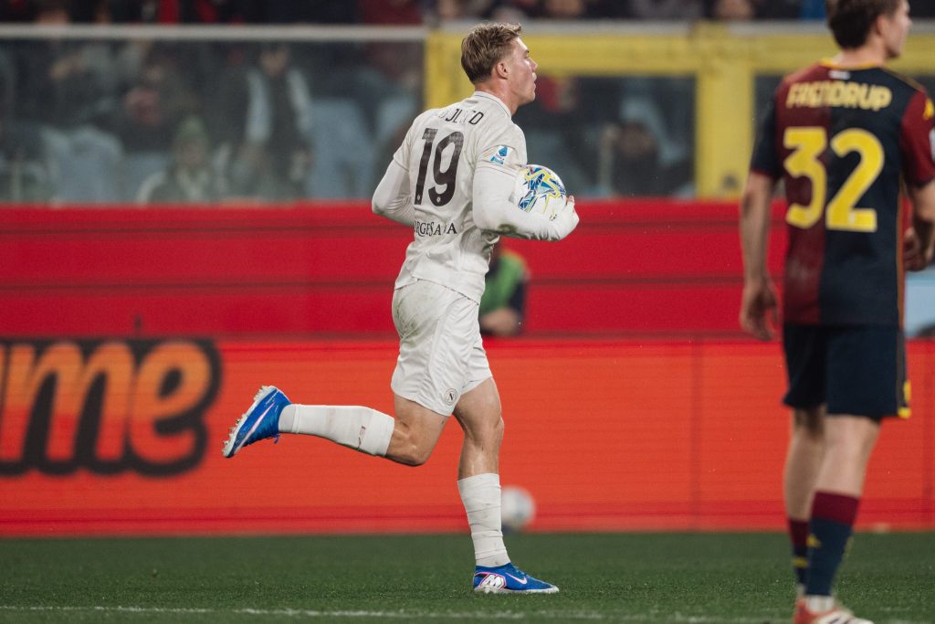 Il Napoli vince a Genova al termine di un match combattuto ed emozionante. Segnano subito i Grifoni con un calcio di rigore di Malinovskyi dopo pochi minuti. Il Napoli si rialza in maniera impetuosa. Prima arriva il pareggio di Hojlund e poi il sorpasso di McTominay con un destro dai 20 metri. Nella ripresa pareggia il Genoa con un diagonale di Colombo. Il Napoli a un quarto d'ora dalla fine resta in 10 per l'espulsione di Juan Jesus, ma arriva nel recupero il ruggito azzurro. Vergara viene steso in area. Rigore. Tira Hojlund che firma la doppietta personale e il gol del successo per il definitivo 3-2.